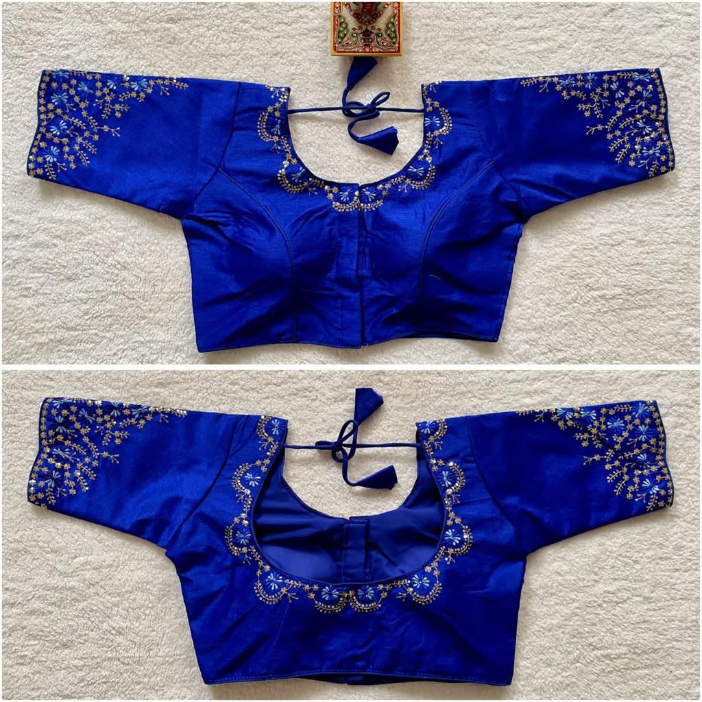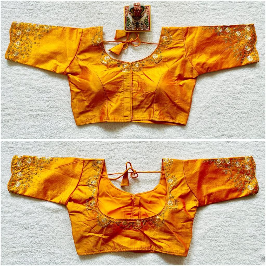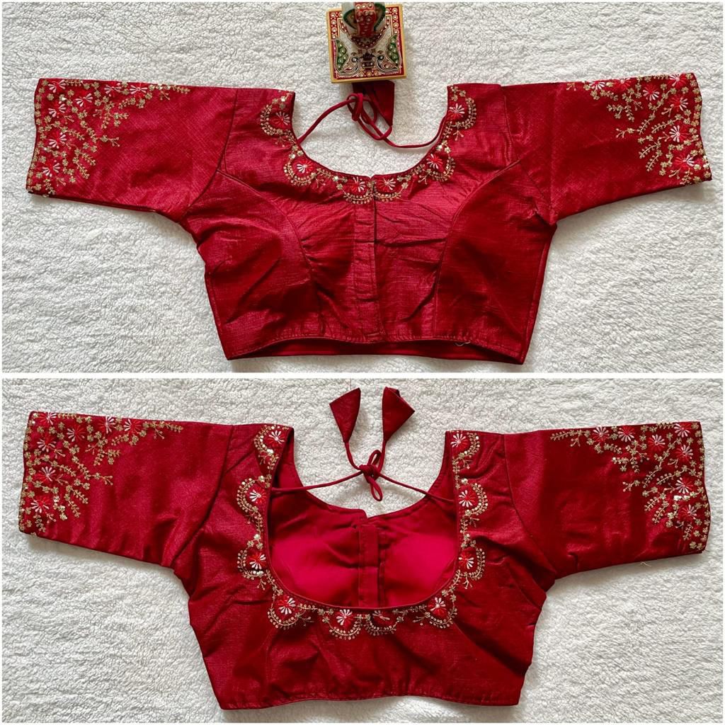 This festive blouse is crafted from luxurious phontam silk, offering a smooth and elegant texture. Designed to fit size 38 with an additional 2-inch margin, it can be altered up to size 42 for a customized fit. The blouse features intricate multi-tone embroidery complemented by delicate sequins work, creating a refined and festive look perfect for special occasions.