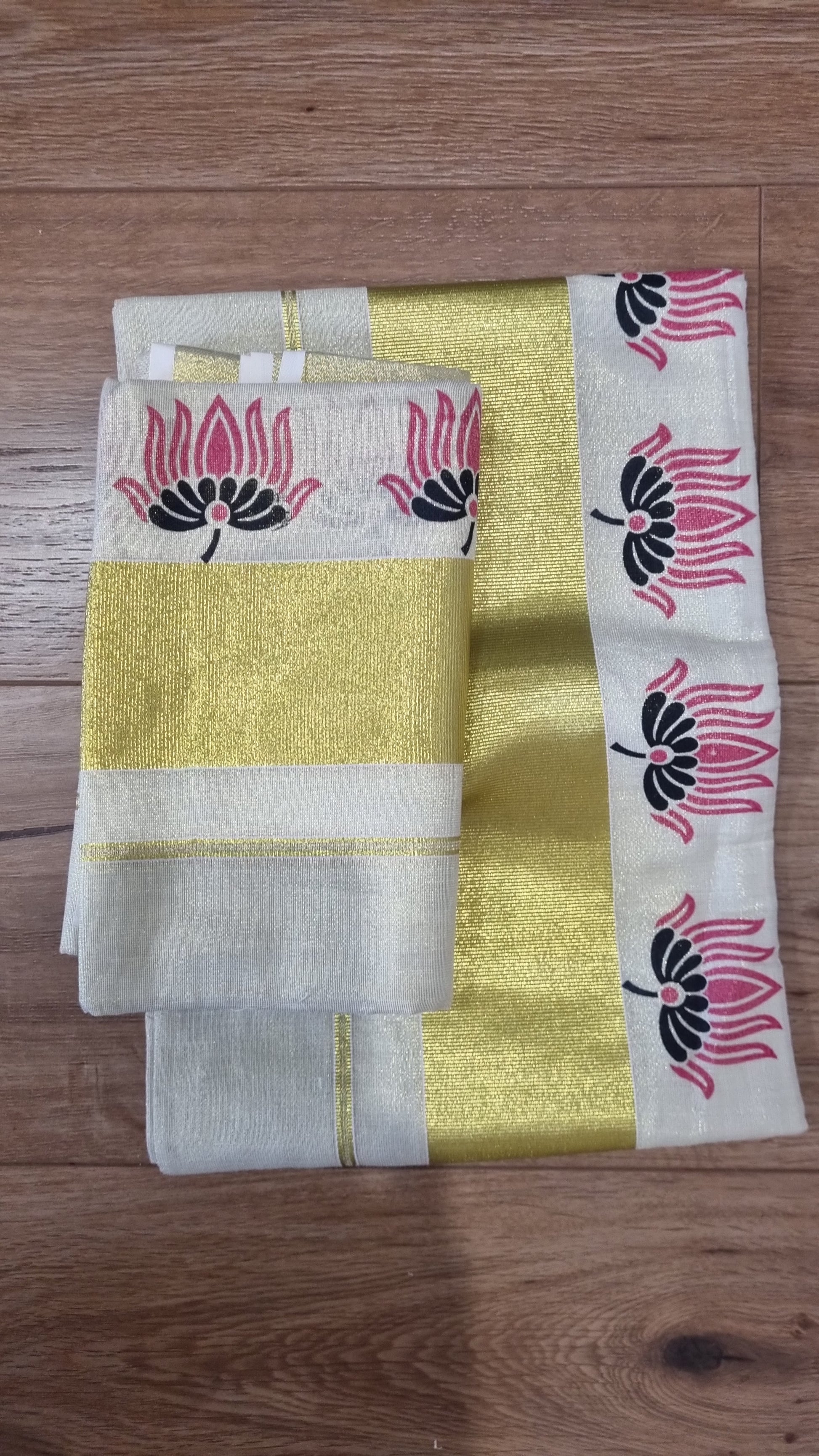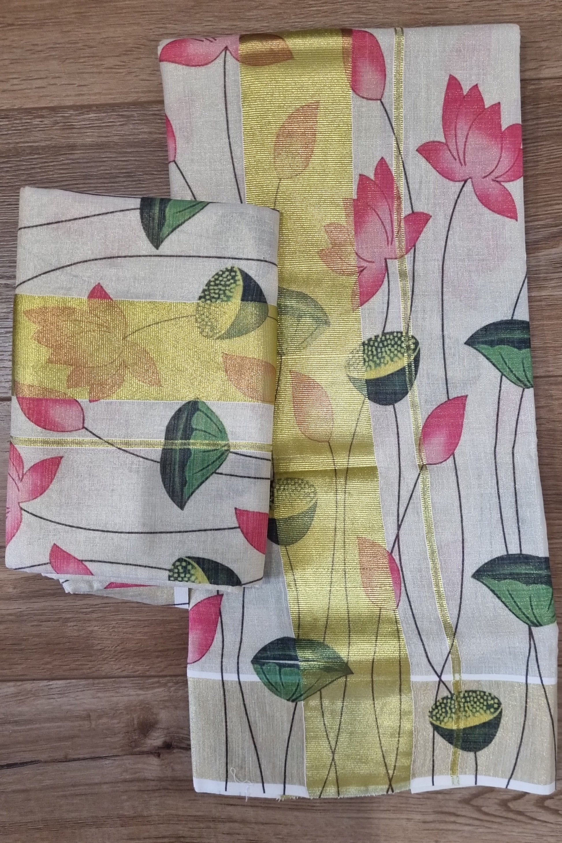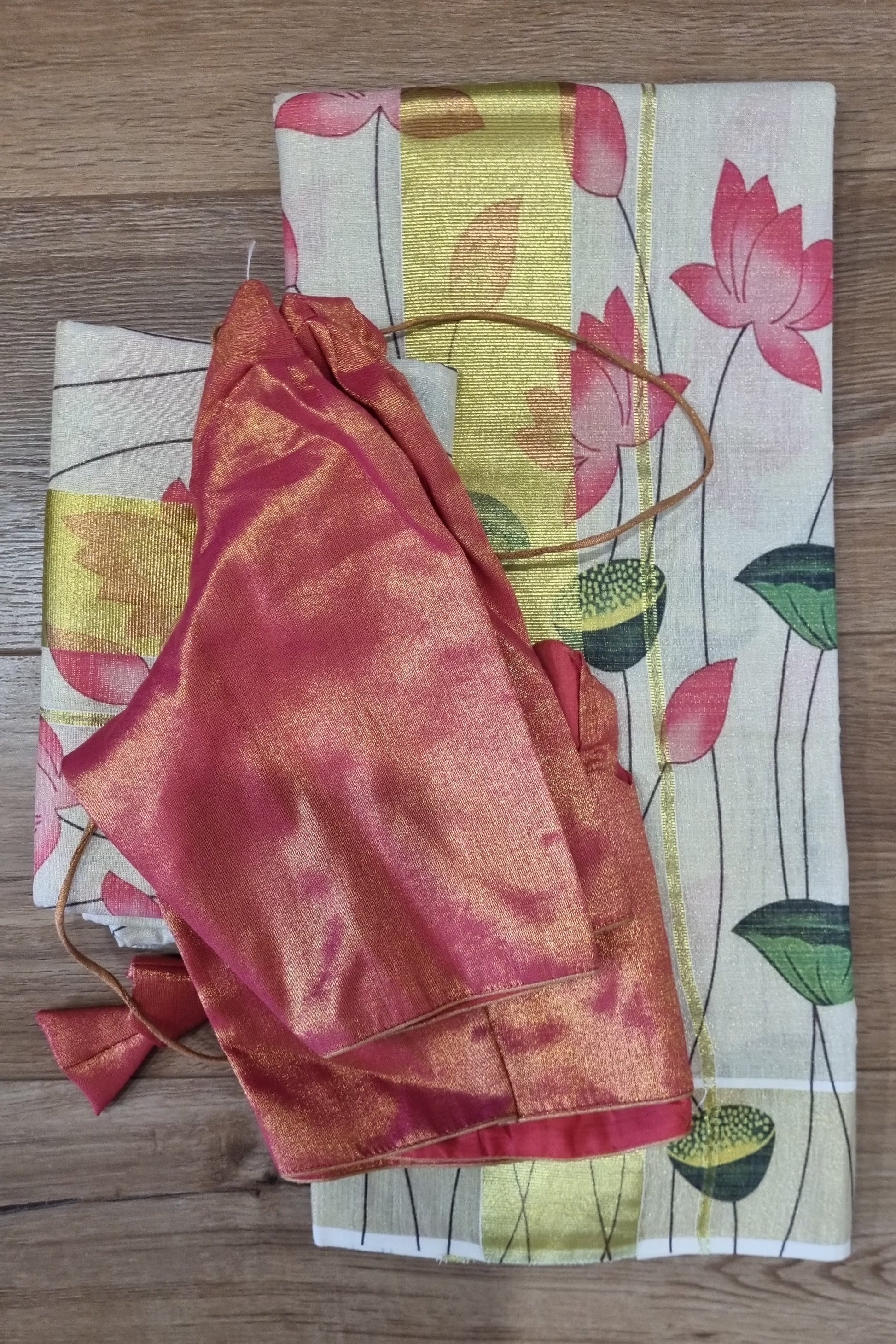 Experience the elegance of traditional Kerala with this Tissue Setmundu, expertly crafted for a refined look. Made from premium tissue fabric, it offers a subtle sheen and lightweight comfort. The set includes ready-to-wear blouses tailored for a perfect fit, ensuring convenience without compromising style. Ideal for festive occasions and cultural celebrations, this ensemble combines heritage craftsmanship with modern ease. Elevate your wardrobe with this timeless piece that reflects authentic Kerala artistry.