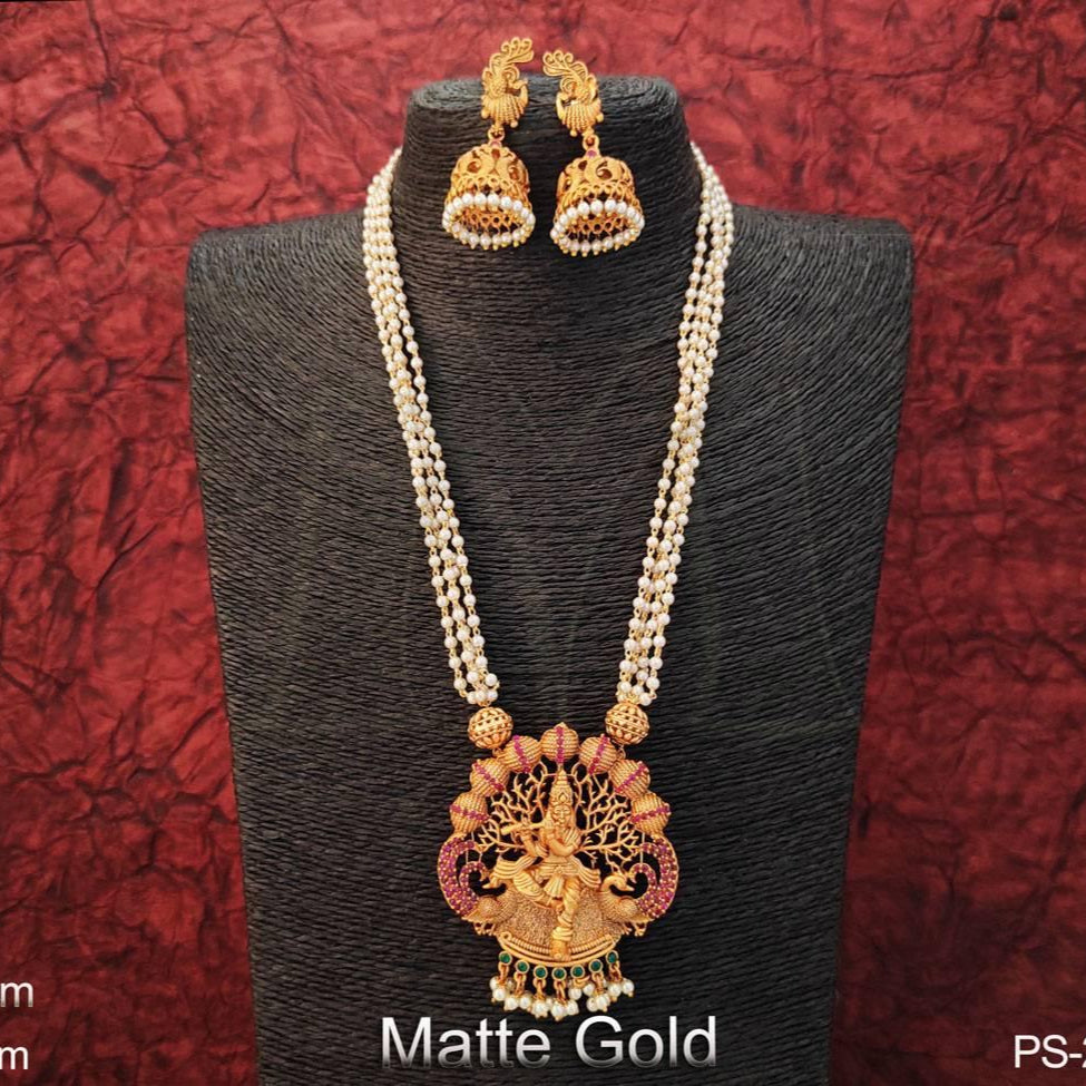 Pearl Haram with Lord Krishna Pendant with peacock jhumka.