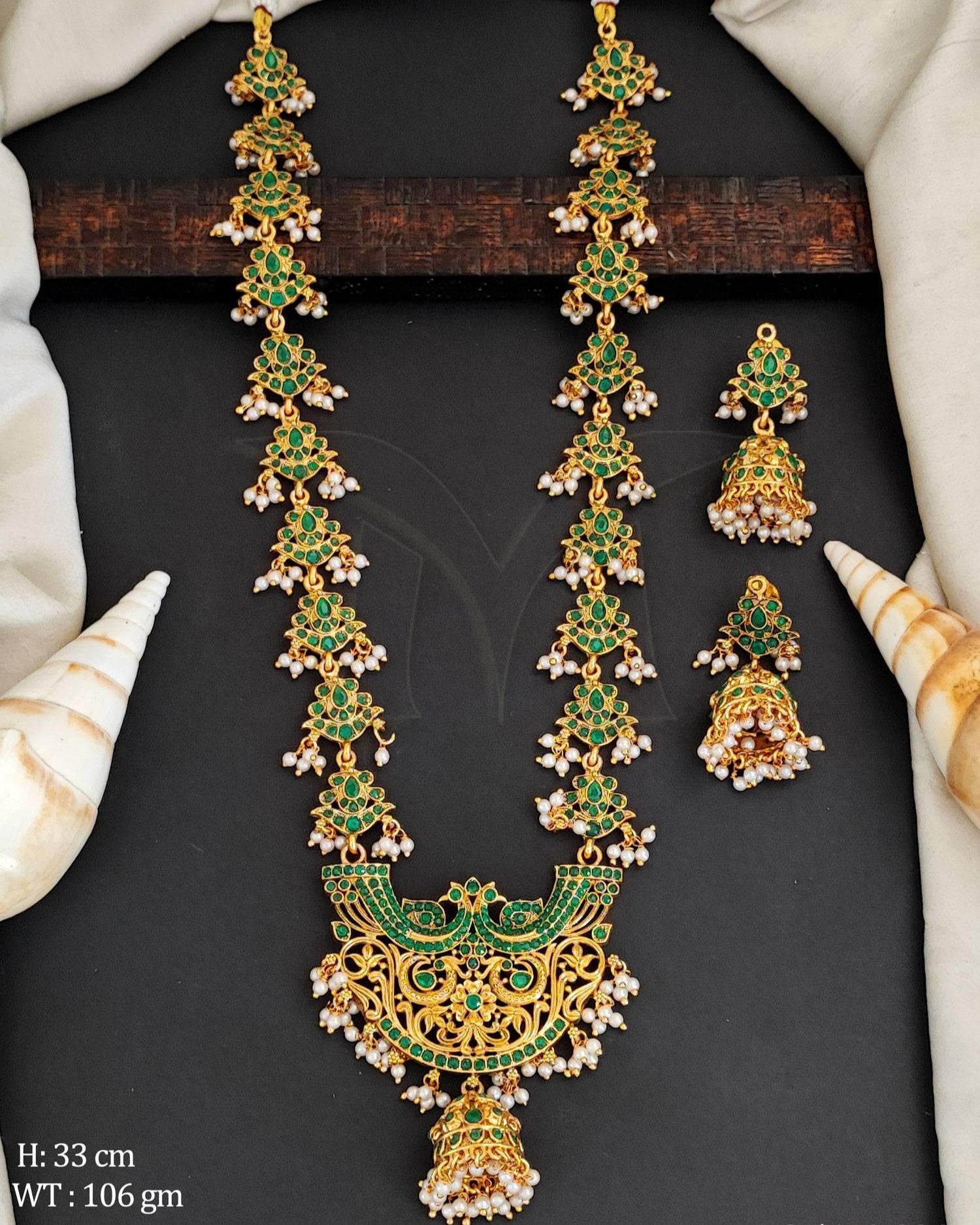 Green long haram with earrings.