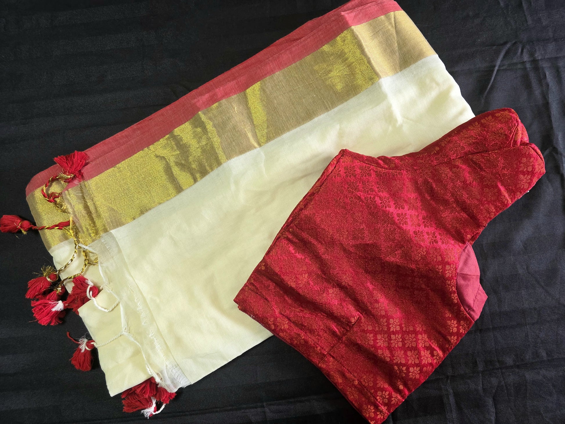 Included with each of our sarees, this blouse blends modern tailoring with traditional design—ready to wear, easy to customize, and made to move with you.
