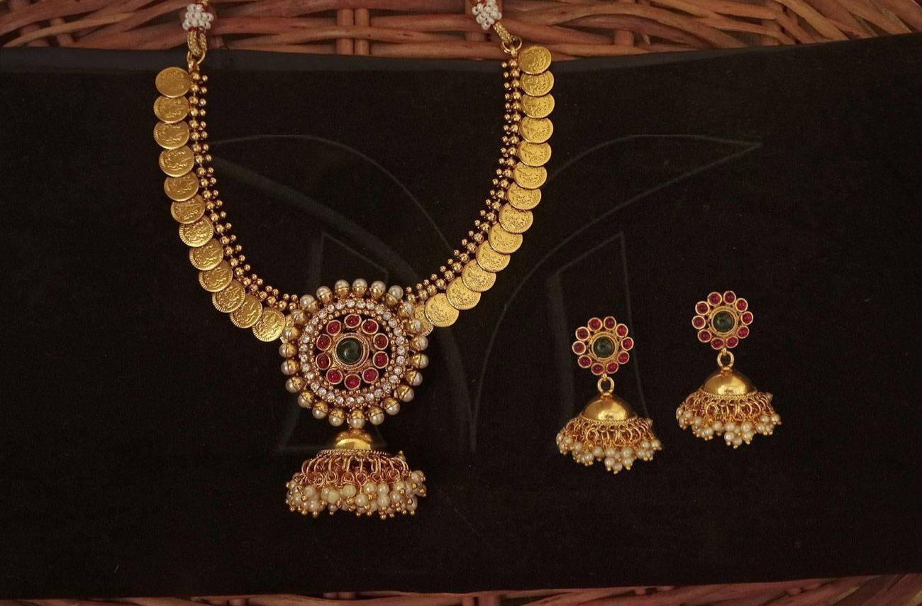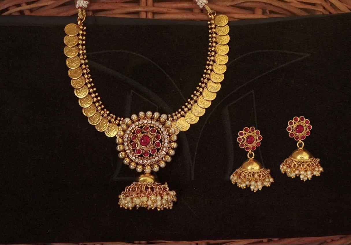 Temple coin Jhumka Designer Coin necklace set
